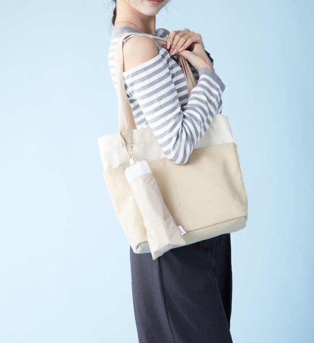 持ち手に長めのストラップが付いているので、腕にかけることが可能です。