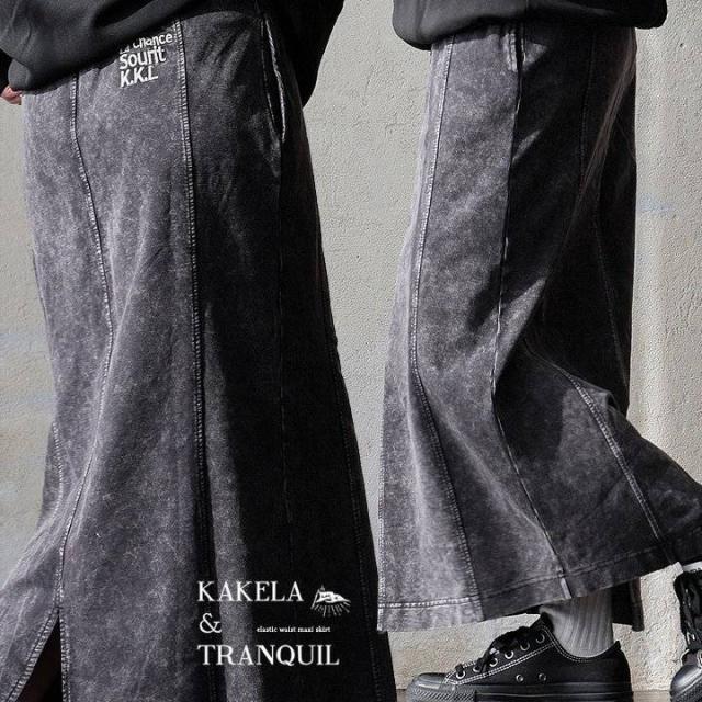 KAKELA&TRANQUIL カケラ&トランクイル スカート マキシ丈 マキシ マキシスカート レディース ウエストゴム ミニ裏毛 スウェット ピグメント バイオ ケミカル 褪せ色 スウェットスカート 刺繍 ペンシル カジュアル パティ