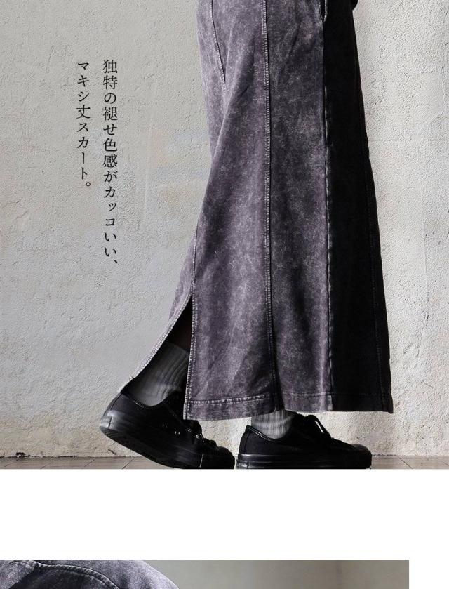 スカート マキシ丈 マキシ マキシスカート レディース ウエストゴム ミニ裏毛 スウェット ピグメント バイオ ケミカル 褪せ色 スウェットスカート 刺繍 ペンシル カジュアル パティ