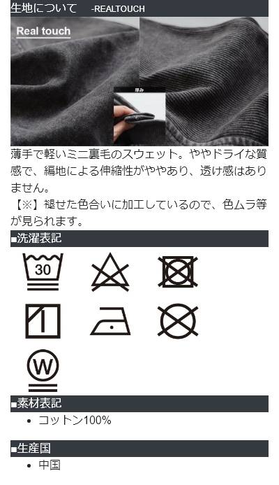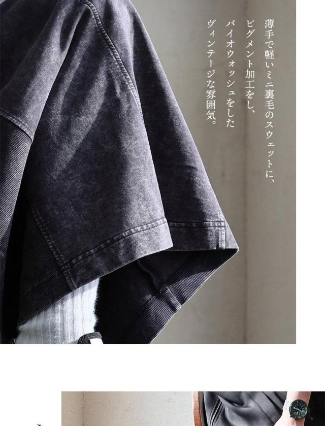 ・薄手で軽いミニ裏毛のスウェットに、ピグメント加工をし、バイオウォッシュをしたヴィンテージな雰囲気。
