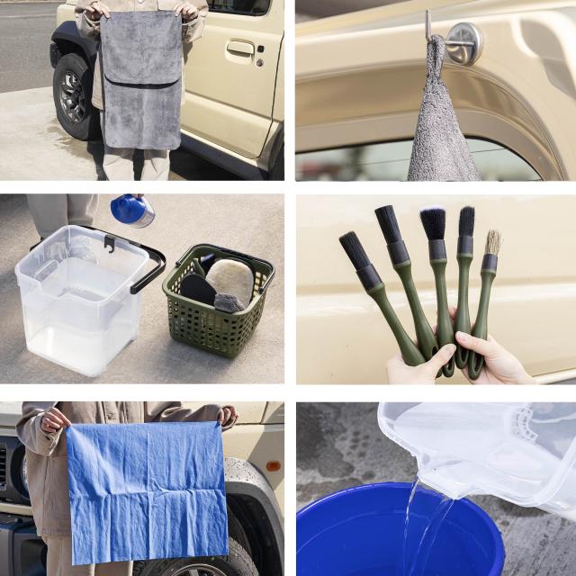 【こだわりの25点セット】 初心者からこだわりの中・上級者まで満足できる! おしゃれに、カジュアルに洗車を楽しみたい方、道具を綺麗に収納したい方、洗車の質をこだわりたい方にも最適な洗車アイテム25点セット。※カーシャンプーやホース類などはお好みに合わせて最適なものを別途ご購入ください。