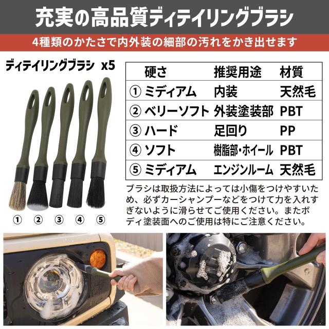 5.ディテイリングブラシ5本セット(ウルトラソフト×1 、ソ フト×1 、ミディア ム×2,ハード×1)
