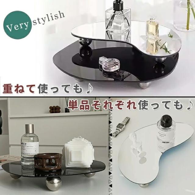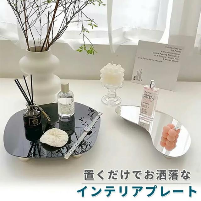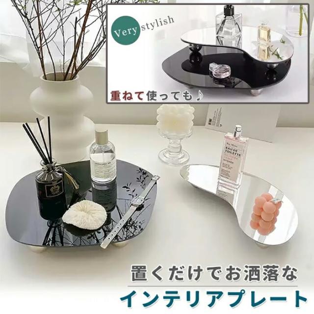 マルチ プレート トレイ 2点セット シルバー 黒 ブラック 鏡 ミラー 韓国 雑貨 インテリア 北欧 丸 円 おしゃれ 大きい ディスプレイ アクリル モノクロ 収納 小物入れ アクセサリー 玄関 鍵 置物 クリア《代引き不可》 ポイント消化