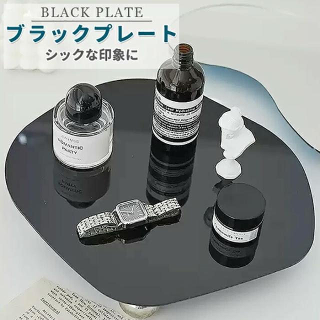 マルチ プレート トレイ 2点セット シルバー 黒 ブラック 鏡 ミラー 韓国 雑貨 インテリア 北欧 丸 円 おしゃれ 大きい ディスプレイ アクリル モノクロ 収納 小物入れ アクセサリー 玄関 鍵 置物 クリア