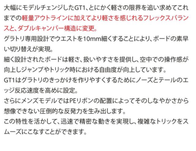 GT1はグラトリのきっかけを作りやすくするためにノーズとテールのエッジ反応速度を高めに設定。