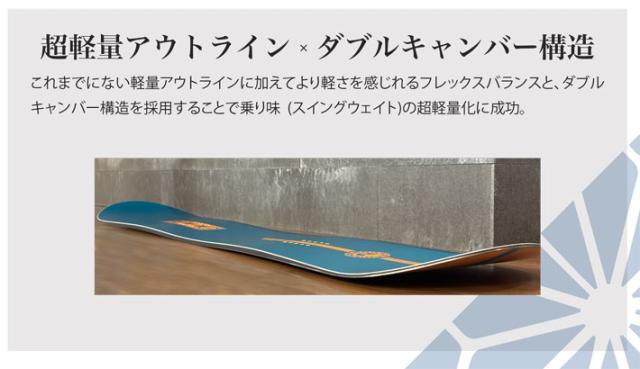 細く設計されたボードは軽さ、扱いやすさを提供し、空中での操作感が向上しジャンプやトリック時における自由度が向上しています。