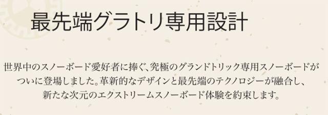 世界中のスノーボード愛好者に捧ぐ、究極のグランドトリック専用スノーボードがついに登場しました。
