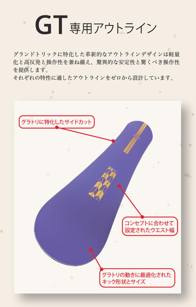 グランドトリックに特化した革新的なアウトラインデザインは軽量化と高反発と操作性を兼ね備え、驚異的な安定性と驚くべき操縦性を提供します。
