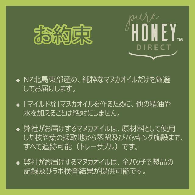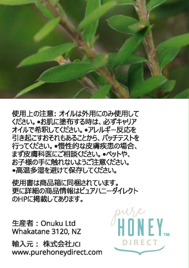 ◆オヌク社製の純粋なマヌカオイル(精油)は、NZ北島のイーストケイプ産です。マヌカ木の枝葉から水蒸気蒸留法で抽出されたエッセンシャルオイルです。