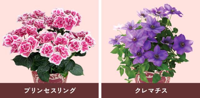 2種類の鉢花のうち1種、母の日メッセージ入りお手入れガイド