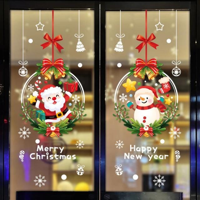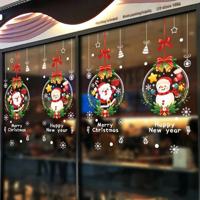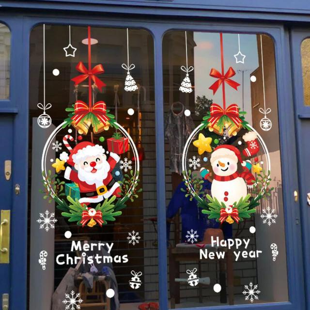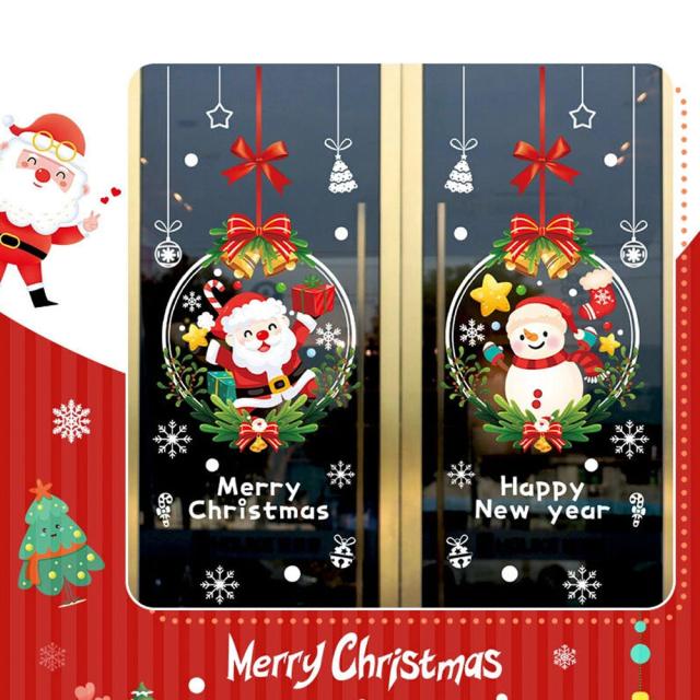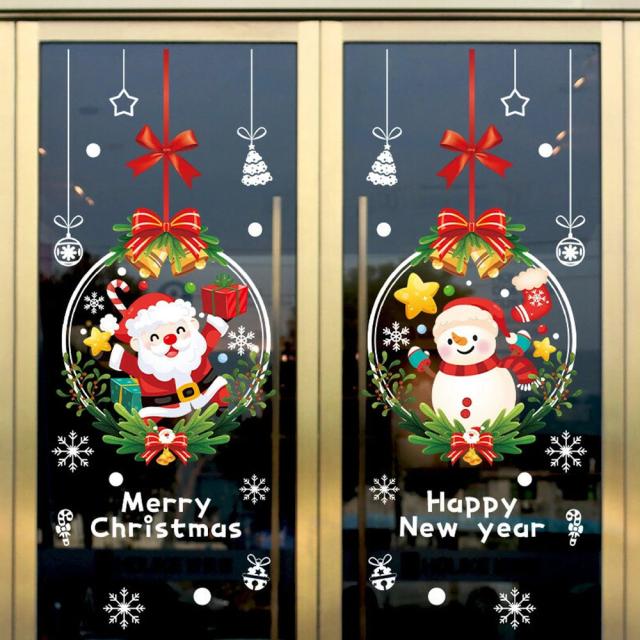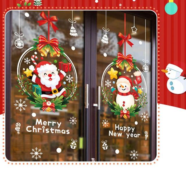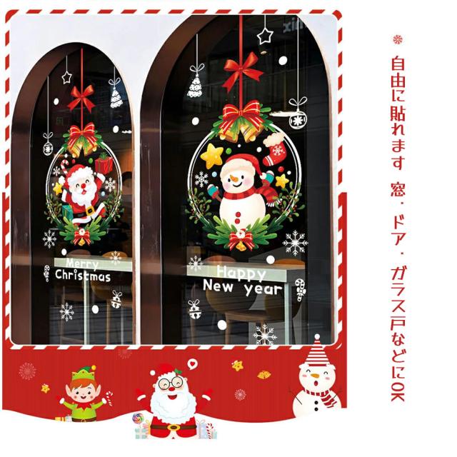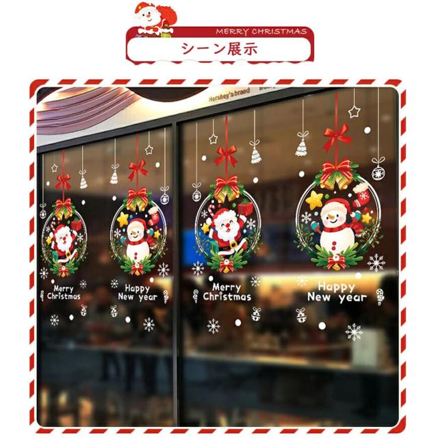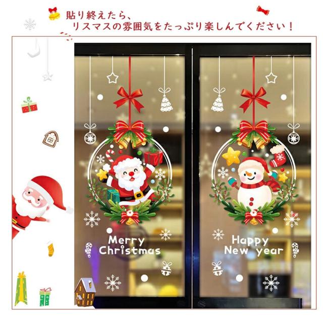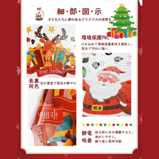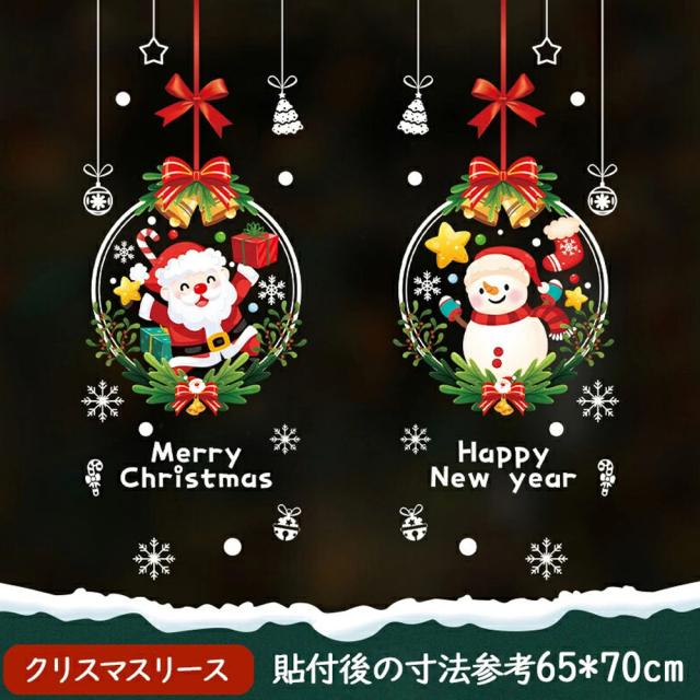 クリスマス 窓ステッカー 窓貼り 静電吸着 免接着剤 サンタクロース・雪だるま 防水PVC 繰り返し使用可能 60CM× 45CM 剥がしやすい 跡残らない ガラス窓・ドア対応 クリスマス装飾 STICKER01