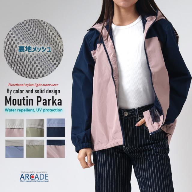 裏メッシュの高機能ナイロン素材マウンテンパーカーブルゾン。