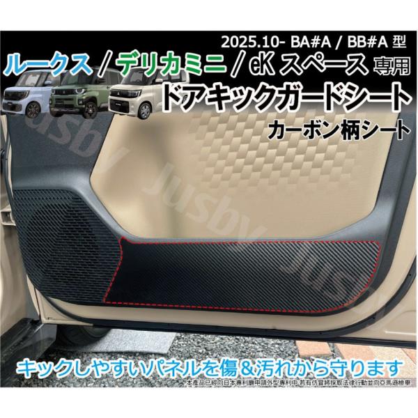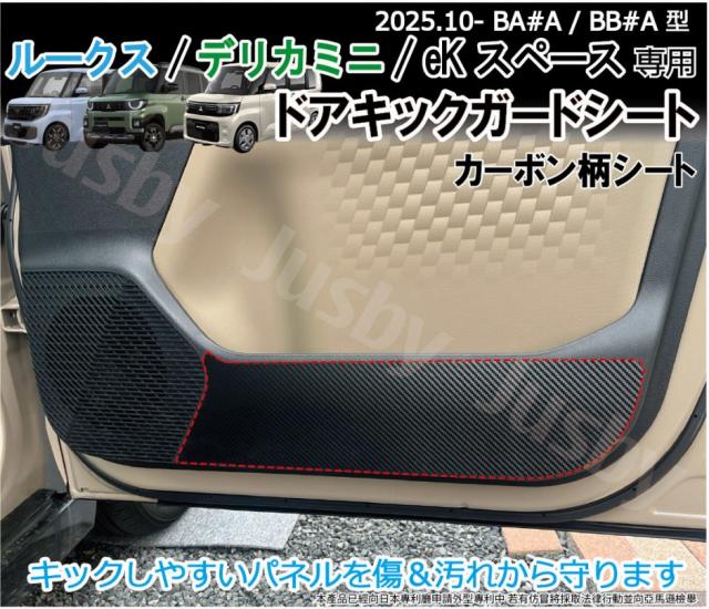 新型ルークス / デリカミニ / eKスペース キックガードシート カーボン柄シート ドアガード キックパネルシート MA#A MB#A 内装保護パーツ アクセサリー