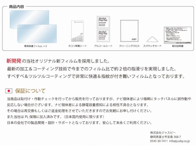 | ・車種専用保護フィルム&予備フィルム 計2枚 ・アルコールシート×2 ・スクラッチカード ・クリーニングクロス ・取付説明書 |