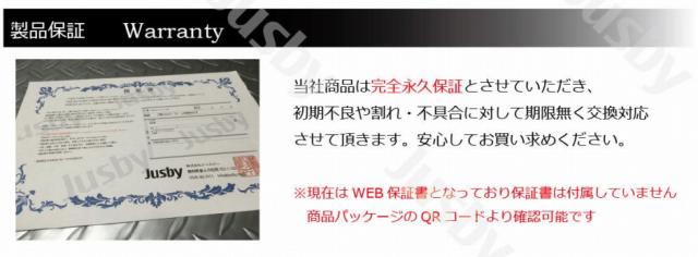 商品にはJusby保証付きです。割れや破損等は装着からの年数に関係無くに保証対応いたします
