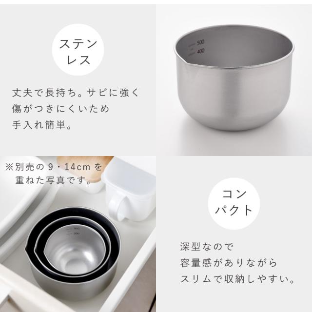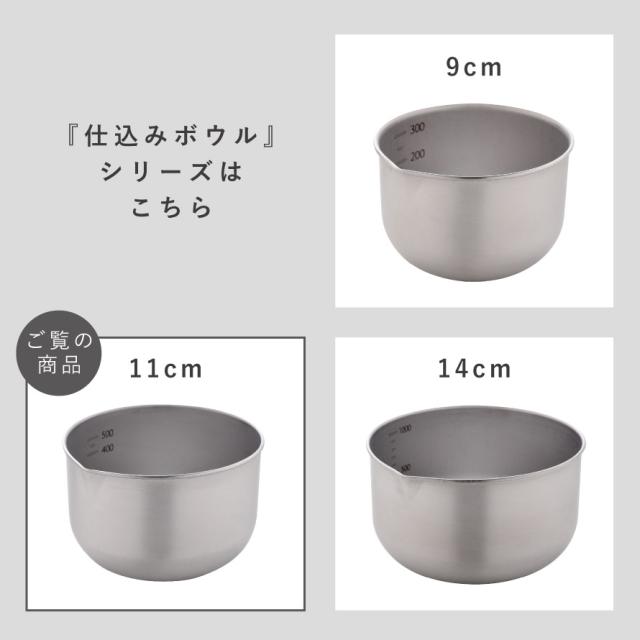 ボウル 11cm 深型 日本製 燕三条 ステンレス 小さめ ステンレスボウル 小さい 深め 卵 注ぎ口 目盛り付き スタッキング 新銀河加工 キッチン 調理器具 逸品物創 深めの仕込みボウル 11cm コンパクト かさばらない
