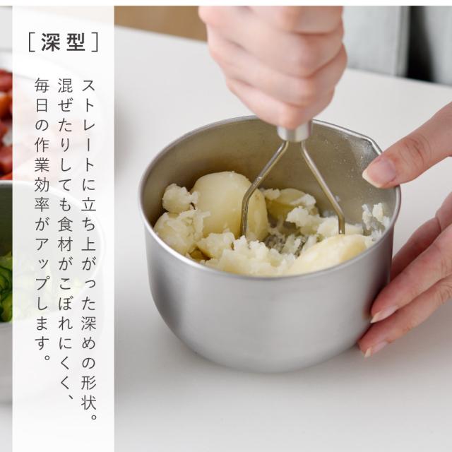 料理の下ごしらえや仕込みに最適な、スリムで深型、11cmのコンパクトボウル。ストレートに立ち上がった深めの形状が特長。混ぜたり和えたりしても食材がこぼれにくい設計で、食材を混ぜる、和える、つぶす、ドレッシングを作るなど、毎日の作業効率がアップします。
