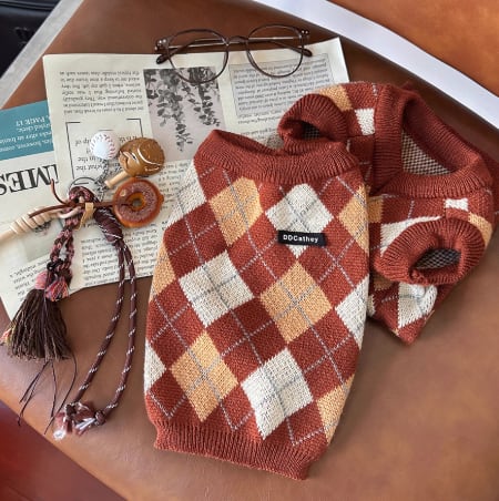 トラディショナルなアーガイル柄で落ち着いた雰囲気を演出し、どんな犬種にもマッチ。お散歩も室内も、ワンちゃんをスタイリッシュに引き立てます。