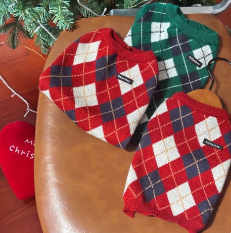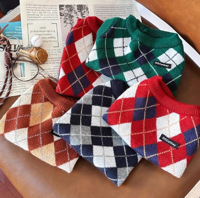 犬服 セーター / 犬 ニット / 犬 防寒着 / 犬服 秋冬 / 犬 おしゃれ 服 / アーガイル柄 犬服 / トイプードル 犬服 / チワワ 犬服 / マルチーズ 犬服 / ビションフリーゼ 犬服 / 犬用 プレゼント