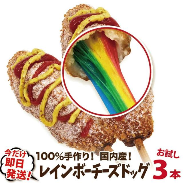 お試しレインボーチーズドック(レインボーチーズハットグ)3本セット 冷凍 話題のインスタフード 韓国グルメ パーティーにどうぞ!