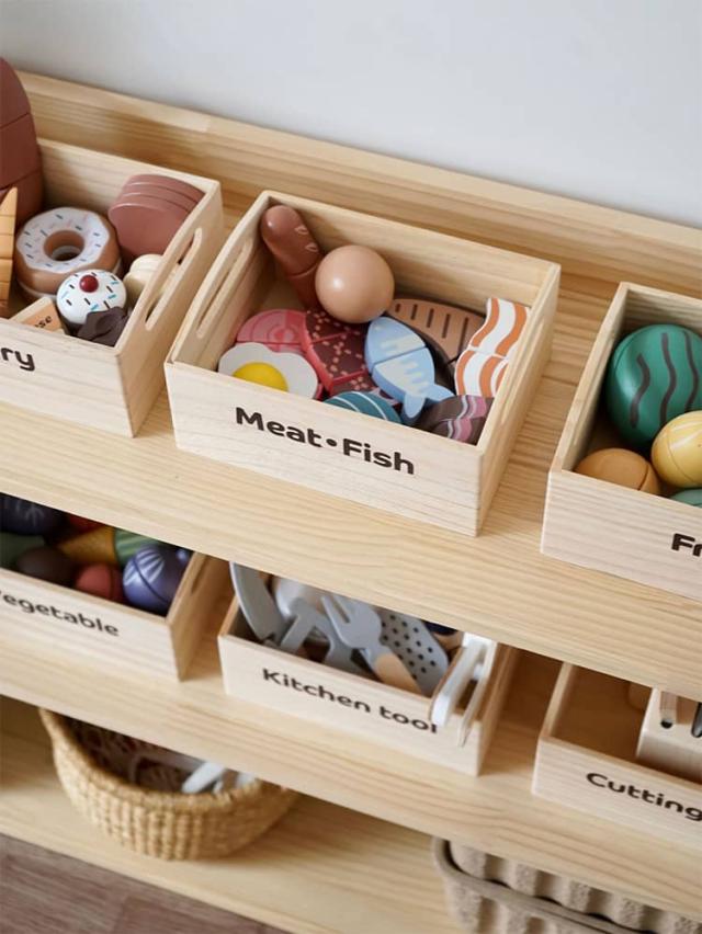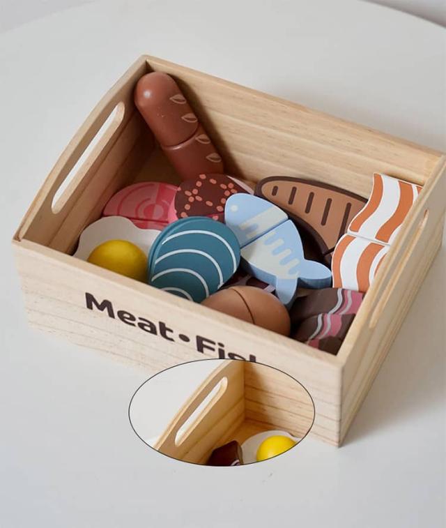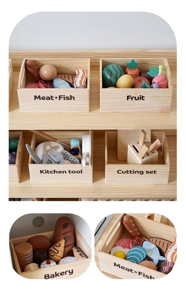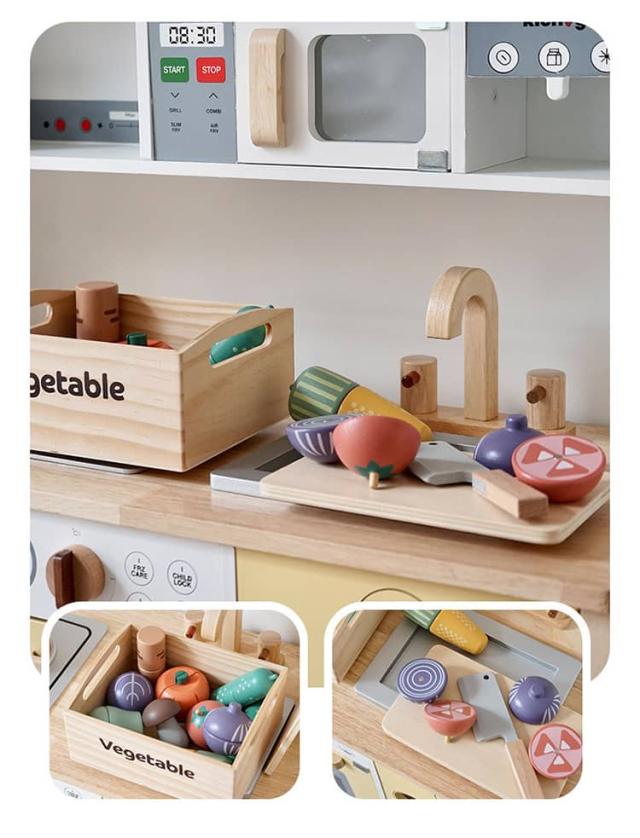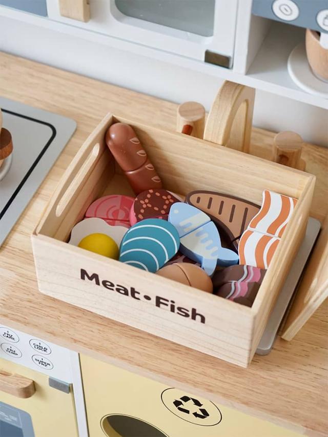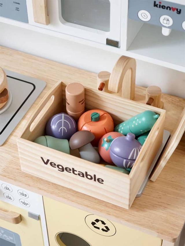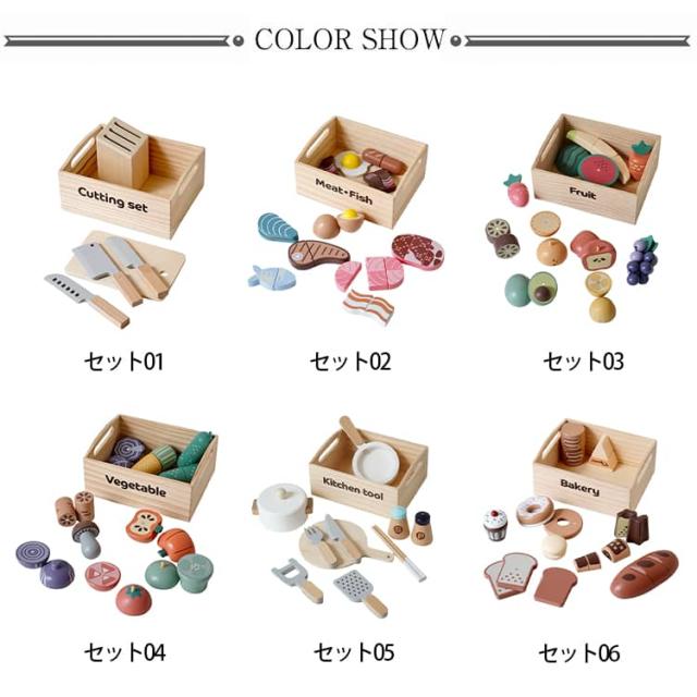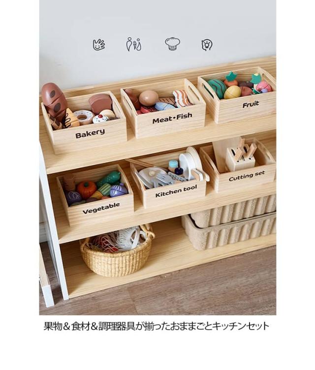 | 果物&食材&調理器具が揃ったおままごとキッチンセット 収納できる箱付きでお片づけ習慣も自然に♪ 安全なマグネット埋め込み式で安心設計 水性塗料&食品衛生法に基づいた着色料を使用 壊れにくく温かみのある木製素材で長く遊べる | |