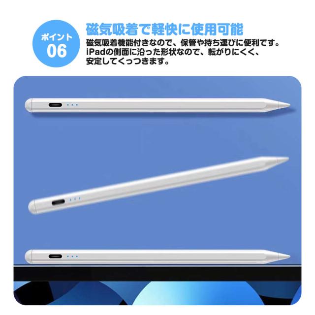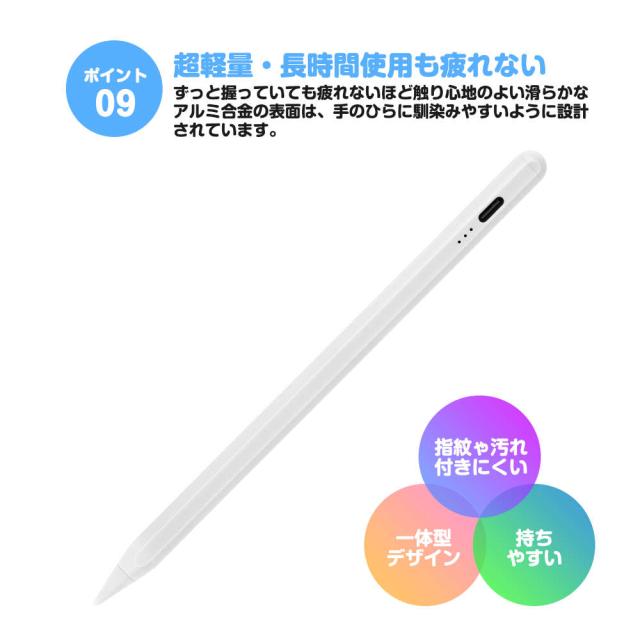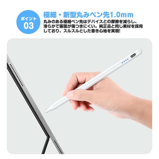 タッチペン iPad デジタル残量表示 超高感度 タッチペン iPad ペンシル Type-c 充電式 iPad 第10世代 第9世代 iPad Pro 12.9インチ パームリジェクション 途切れ 遅延 誤操作防止 超高感度 スタイラスペン USB充電式