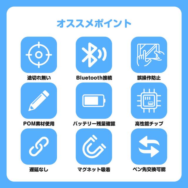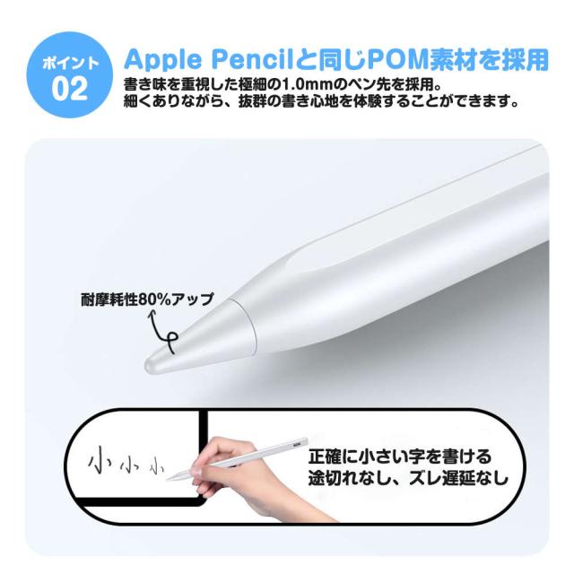 丸みのあるペン先は直径1.0mmと極細で、材質は純正のアップルペンシルと同じPOM素材を採用し、画面に傷つきにくい。本格的なスケッチからちょっとした手書きメモ、ツムツムなどのゲームまでいろいろな用途で大活躍できます。