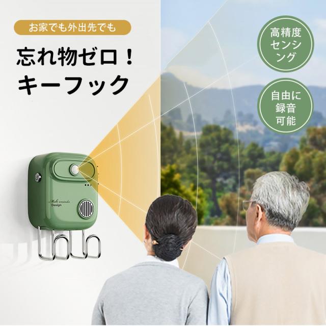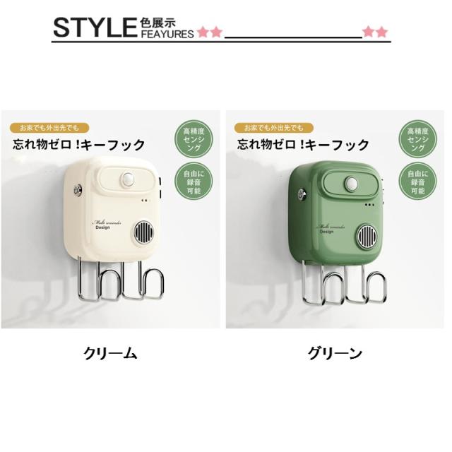 キーフック 玄関キーフック 壁掛け 録音機能付き 忘れ物防止 便利 デザイン シンプル おしゃれ 玄関収納 キー収納 便利グッズ 音声通知 簡単操作