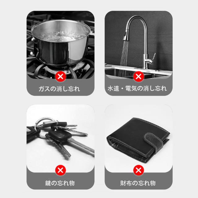 「鍵を忘れないで」「携帯を持とう」など、自分で設定した言葉でお知らせ。