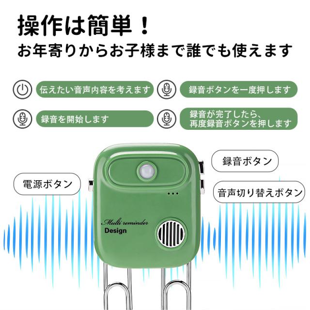 本体に録音機能が搭載されており、自分の声でメッセージを録音することができます。