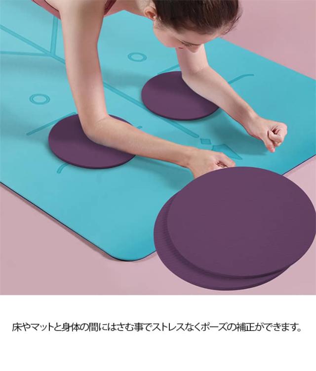 | ヨガ初心者におすすめ!ラウンド型のヨガパット2個セットです。 程よい厚さと柔らかさのあるクッションで肘や膝への負担を軽減します◎ 床やマットと身体の間にはさむ事でストレスなくポーズの補正ができます。 ひざやお尻、頭が安定しやすい様に中央部分にくぼみがあり、またクッション性が高くヨガブランケットの代わりとしてもお使いいただけます。 快適にストレッチやヨガ、トレーニングができる♪ヨガをやりたいけど、「膝が黒ずむのがイヤ!」「膝やお尻が痛い!」という方にオススメ! | |