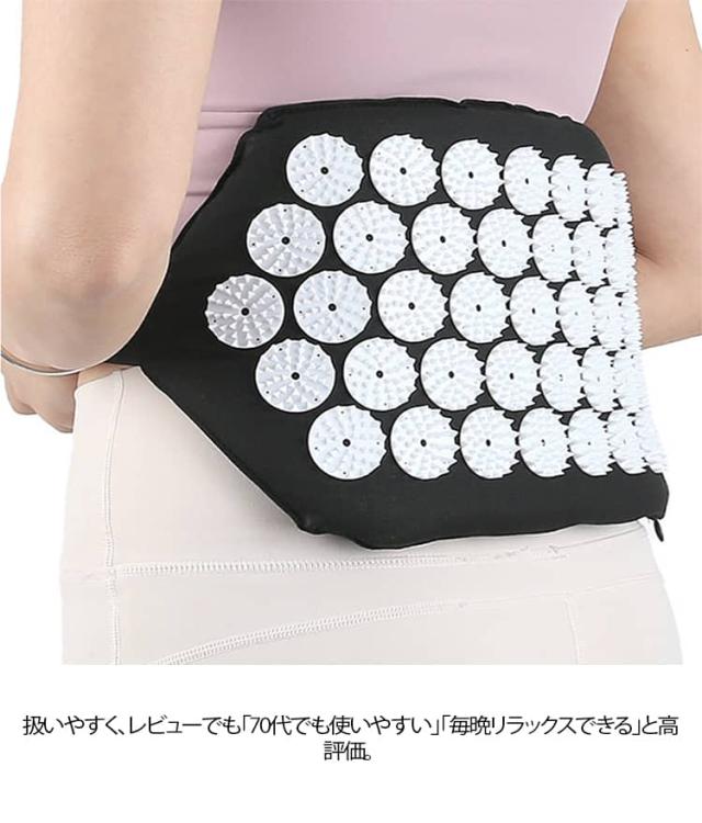 | バックルで巻いて留めるだけ!調節も取り外しもラクラクです! 腰のツボを的確に押して、ガチガチの疲れをじんわりほぐします。 自然と腰が伸びて心地よいストレッチ効果が得られます。 座ったままマッサージ&腰サポート。オフィスや在宅ワーク中にも活躍します。 扱いやすく、レビューでも「70代でも使いやすい」「毎晩リラックスできる」と高評価。 | |