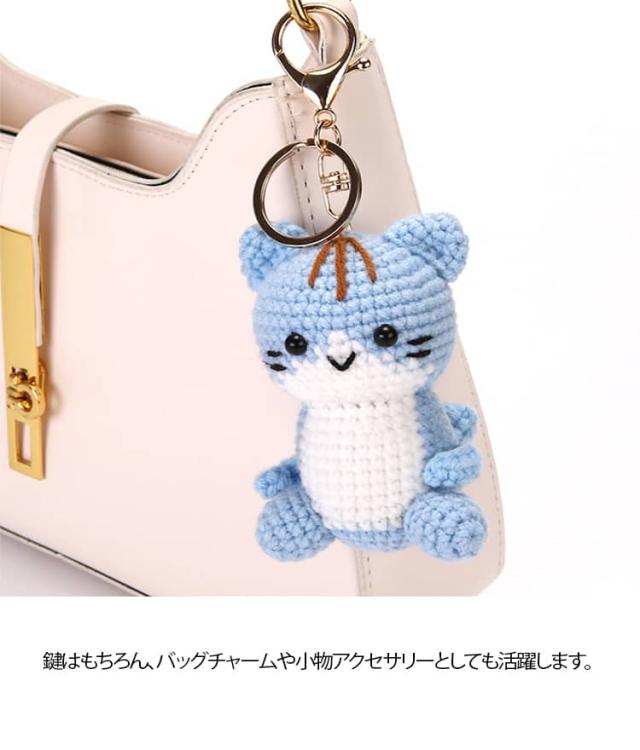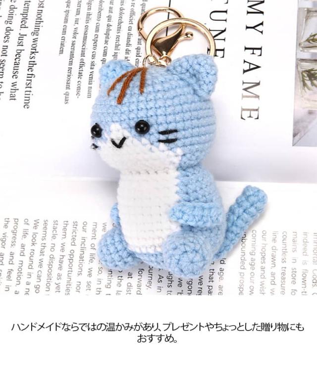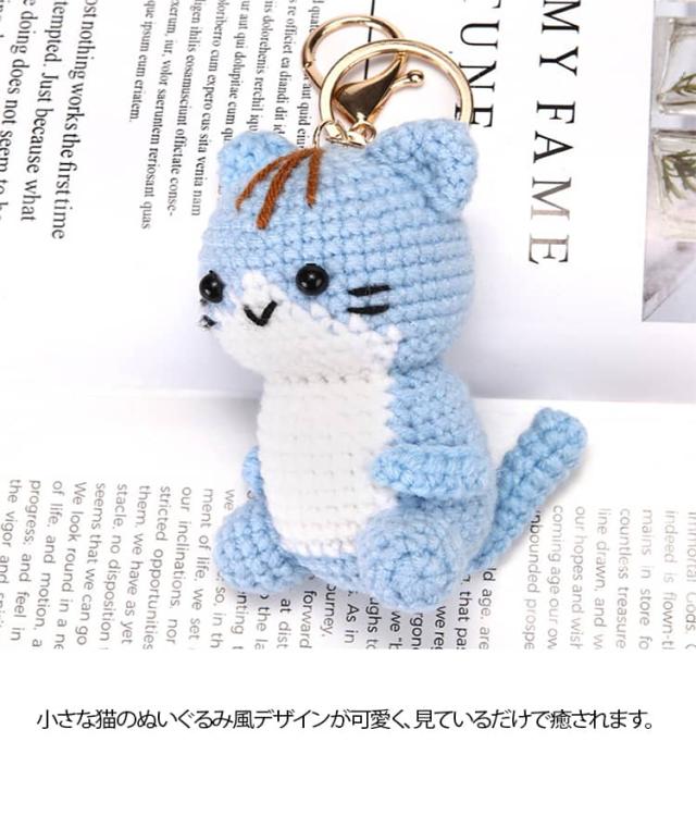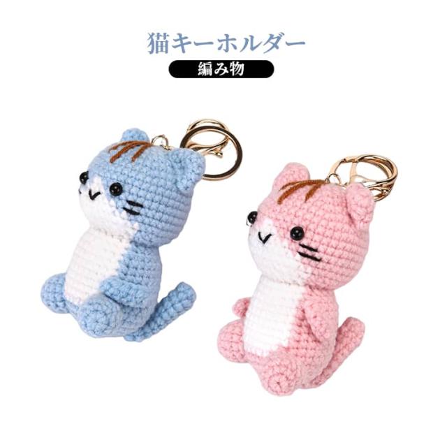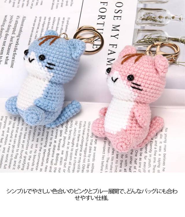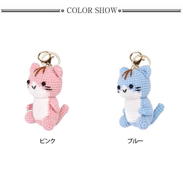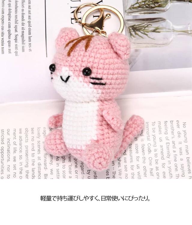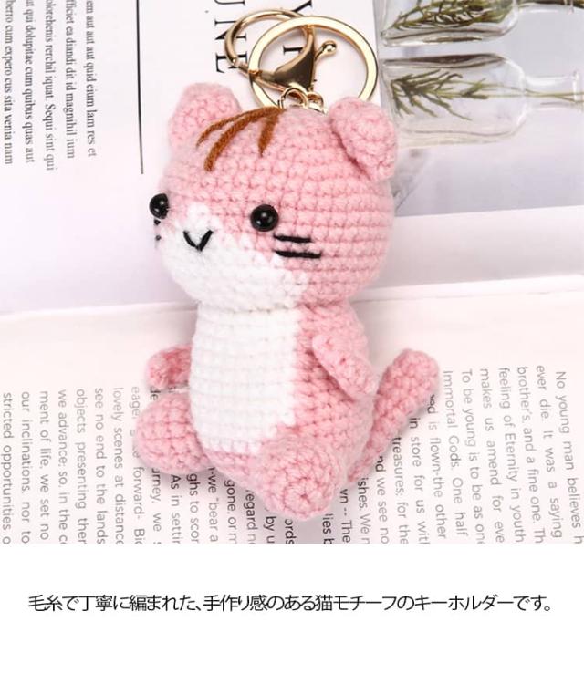 モチーフ シンプル キーホルダー 編み物 レディース 雑貨 人形 ぬいぐるみ風 かわいい キッズ 猫 バッグチャーム キーリング ねこ 小物 手作り風 バッグアクセサリー ナチュラル プレゼント ギフト ピンク
