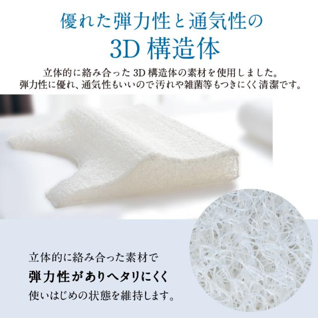 整体師が勧める 肩フィット 低め 枕 洗える 洗濯乾燥機使用可 3D 枕 36×53cm 3Dファイバー 丸洗いOK 優れた 弾力性 通気性 3D構造体