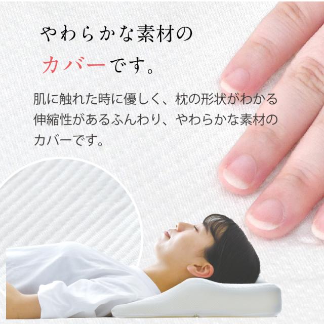 肌に触れた時に優しく、枕の形状がわかる伸縮性があるふんわり、やわらかな素材のカバーです。