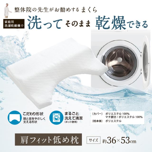\家庭用洗濯乾燥機で、洗って!そのまま乾燥できる/整体師が勧める 肩フィット低め枕 【3D構造:約36×53cm】