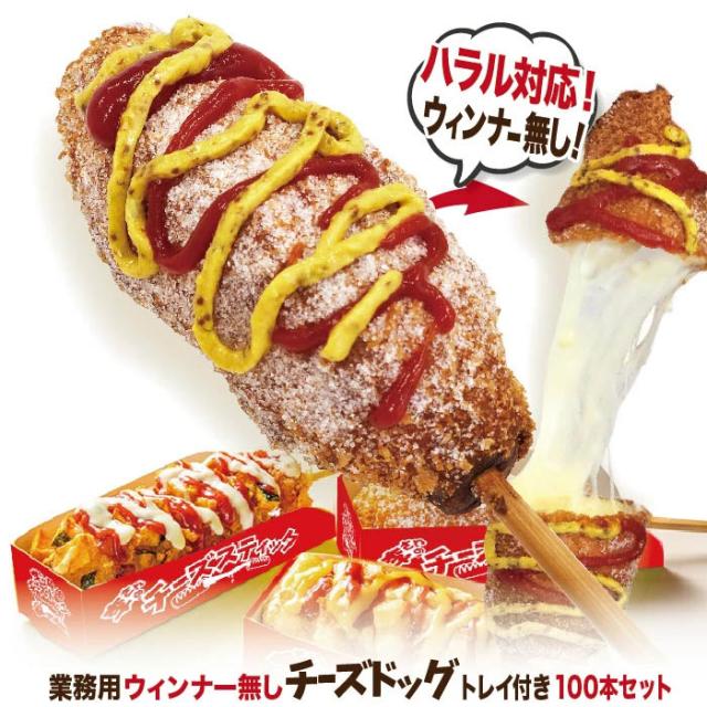 【ハラル対応】業務用 李さんの韓国チーズドッグ(ウィンナー無し) おしゃれな専用トレイ付き100本セット ポスター・のぼりのPDFデータ付 送料無料 韓国グルメ 屋台の食べ物に!ソウルチーズホットドッグ!ムスリムの方や豚肉が苦手な方にも!