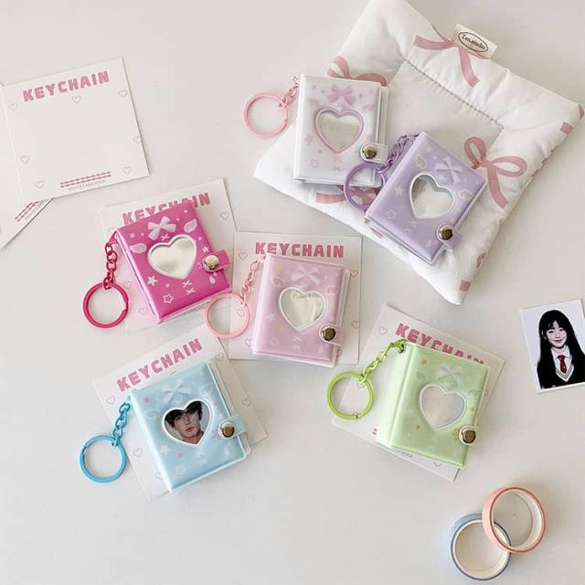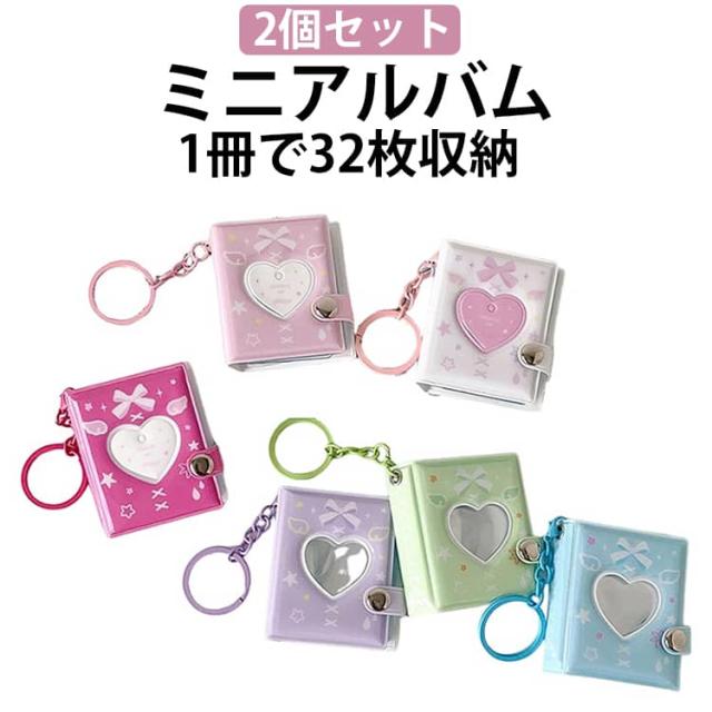 ミニアルバムキーホルダー シール帳 【2個セット】 ミニシール帳 32枚収納 ハート アルバム 手作り 写真入りキーホルダー 推し活グッズ 【2個セット】 カバン掛け フォトアルバム 結婚式 誕生日 結婚記念日 応援 女の子 思い出記録