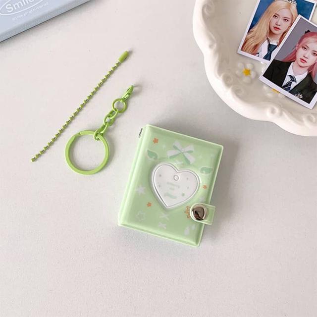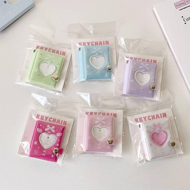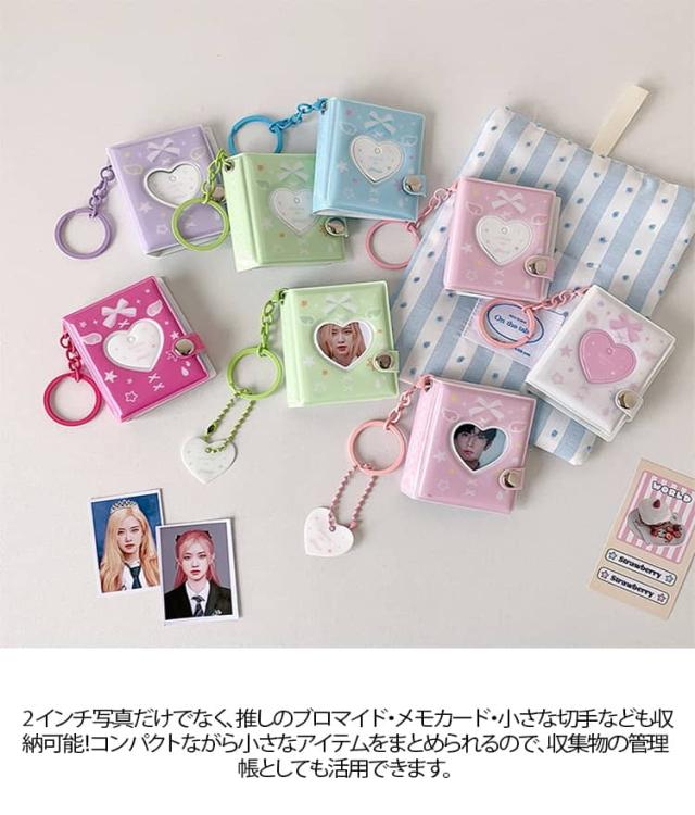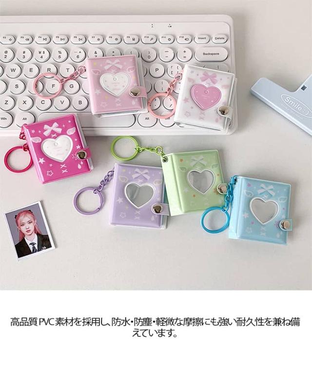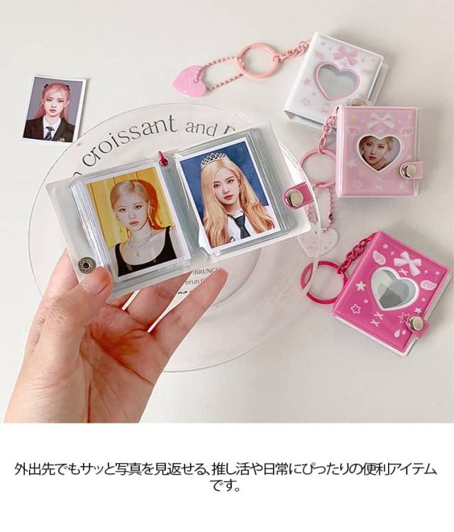 | コンパクトなサイズ(約 6.5×5.4cm)ながら、1 冊で 2 インチ写真を32 枚(16 ページ両面使用)収納可能! 表紙のハート型開口部からお気に入りの推し写真を直接見せられ、蝶結び・星柄のキュートなデザインが雰囲気を引き立てます 付属のキーホルダー + ハートペンダントを使って、バッグ・カバン・鍵に簡単に取り付け OK! 外出先でもサッと写真を見返せる、推し活や日常にぴったりの便利アイテムです 高品質 PVC 素材を採用し、防水・防塵・軽微な摩擦にも強い耐久性を兼ね備えています。 2 インチ写真だけでなく、推しのブロマイド・メモカード・小さな切手なども収納可能!コンパクトながら小さなアイテムをまとめられるので、収集物の管理帳としても活用できます | |
