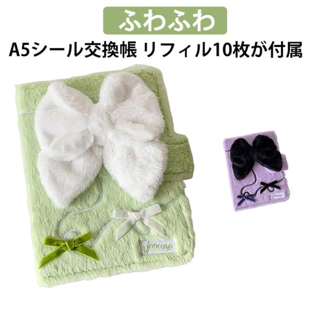 リフィル10枚 シール帳 A5 かわいい バインダー 可愛いシール帳 シール交換帳 蝶結び ふわふわ 女の子向け シール収納 シール帳 写真 アルバム 大容量 シール帳 癒やし可愛いシール帳 ギフト プレゼント 大きめシール帳 もふもふ 誕生日 学校 学生 推し活グッズ