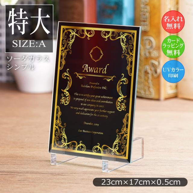 ガラス表彰盾 高級ラグジュアリーデザイン(特大)名入れ・ロゴ対応 表彰楯 記念盾 ゴールド 企業表彰に