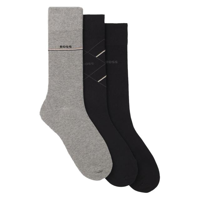無地と柄のデザインが特徴のBOSS Menswearのレギュラー丈ソックス3足セットは毎日の必需品です。ロゴディテール入り。コットンを贅沢に使用。この製品は、少なくとも60%の原材料を再生農業由来の綿で作られています。再生農業は、自然環境の保全と再生を最優先とし、生物多様性の向上、水質の維持、土壌の健全性向上を目指しています。