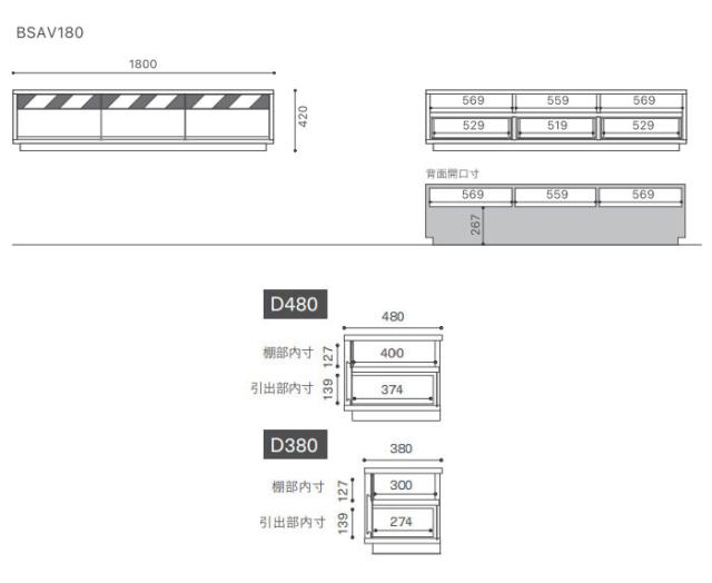 W1800×D380・480×H420mm