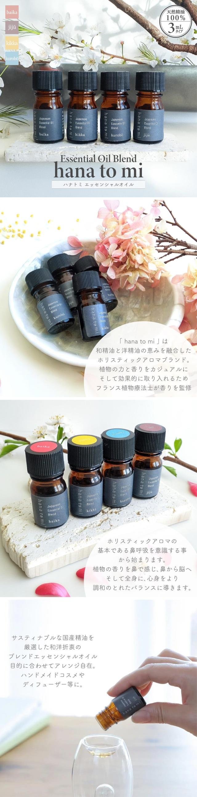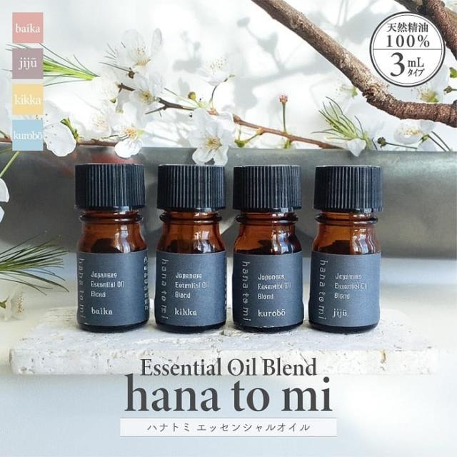 アロマ 精油 hana to mi ハナトミ エッセンシャルオイル 3mL 全4種類 天然精油100% FSC認証 化粧箱入り ブレンド アロマオイル フレグランス アロマテラピー ヒーリング 加湿器 ディフューザー アロマスプレー コスメ いい香り おしゃれ ギフト インテリア
