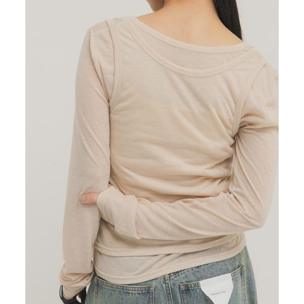 春らしいシアー感と、柔らかく着心地の良いカットソー素材を使用したレイヤードトップス。程よくコンパクトなサイジングで、自然とスタイルアップが叶います。セット使いはもちろん、別々でも着回しが可能。ボリュームのあるボトムと相性抜群になっており、落ち着きのあるカラーバリエーションもポイントです。