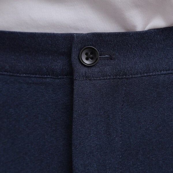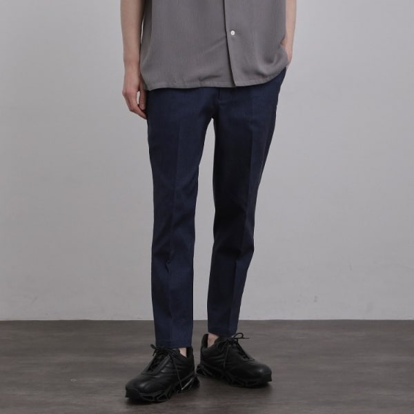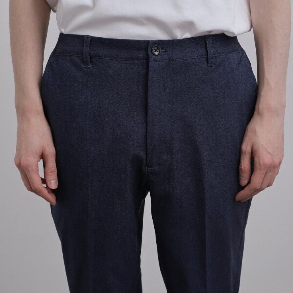 フロントにはセンタープレスを施し、カジュアルな素材感ながらも、スラックスのような上品な印象をプラスしました。