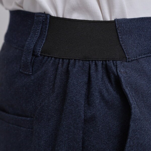 ウエストの両サイドはゴム仕様になっており、ベルトレスでも快適なフィット感を提供します。