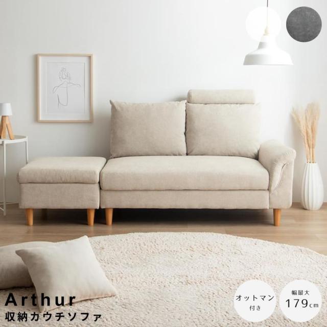 ごろ寝も収納も叶える、『Arthur(アルチュール) オットマン付き2人掛け収納カウチソファ』。