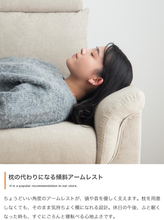 アーム部分にはほどよい傾斜があり、枕の代わりとして頭や首をやさしく支えます。