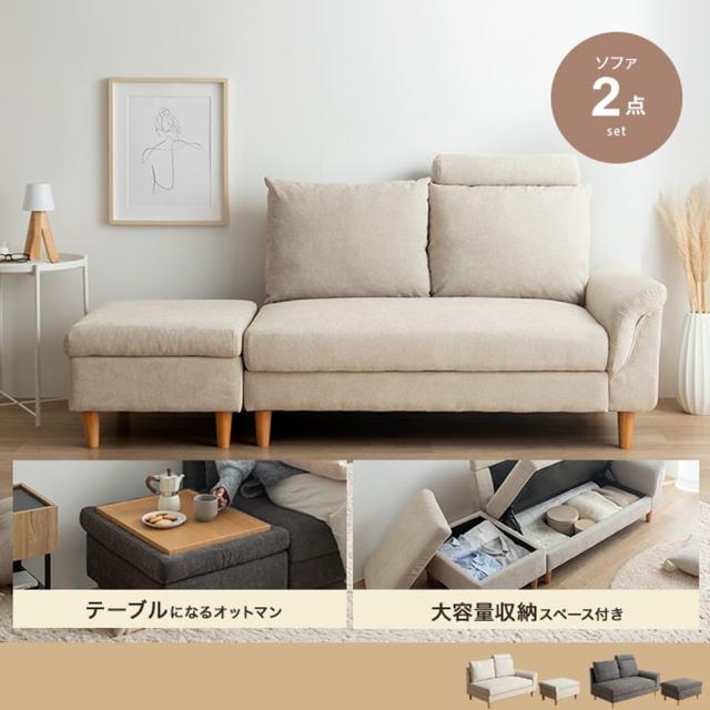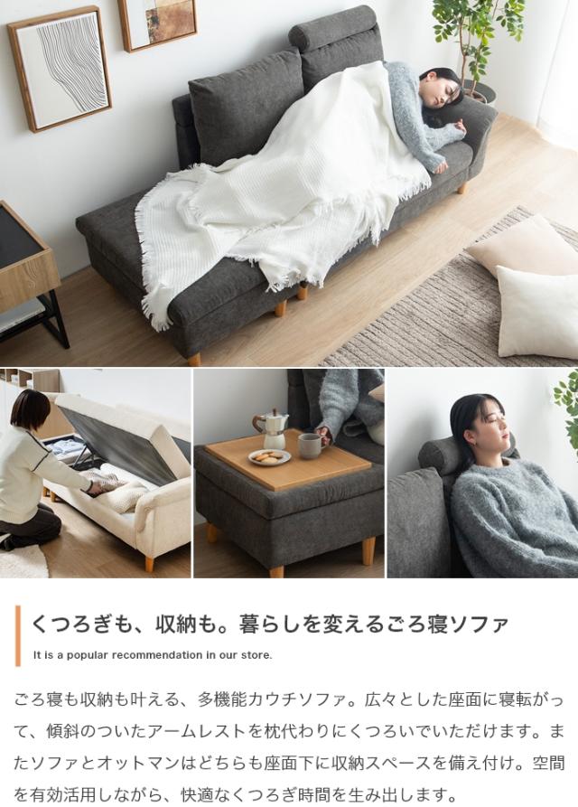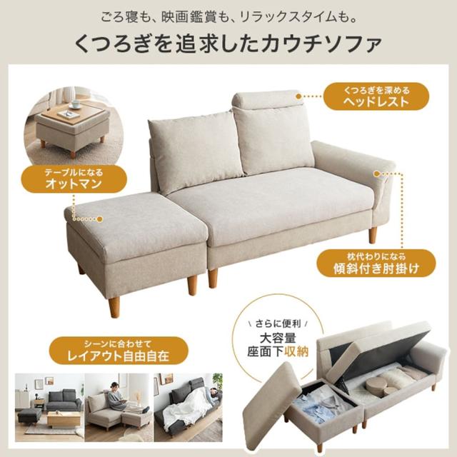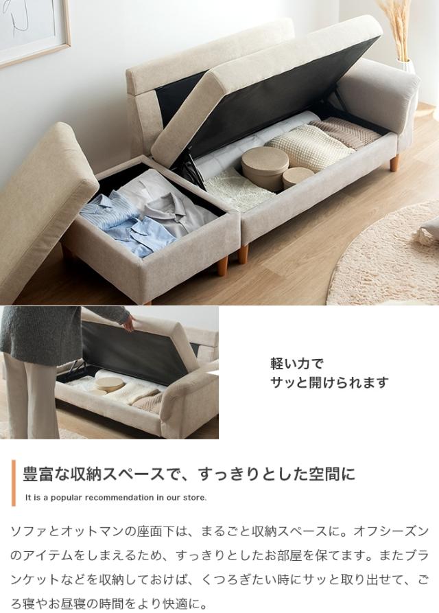 オットマン付き2人掛け収納カウチソファ カウチソファ 収納付きソファ 多機能ソファ ごろ寝ソファ オットマン付きソファ 2人掛け